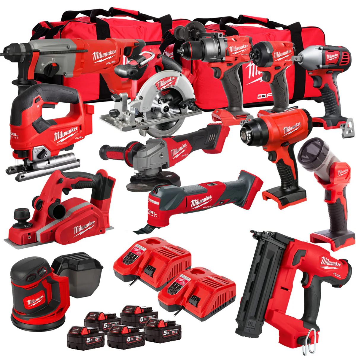 Milwaukee 18V 13 Piece Power Tool Kit with 5 x 5.0Ah Batteries T4TM-53