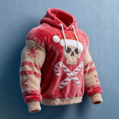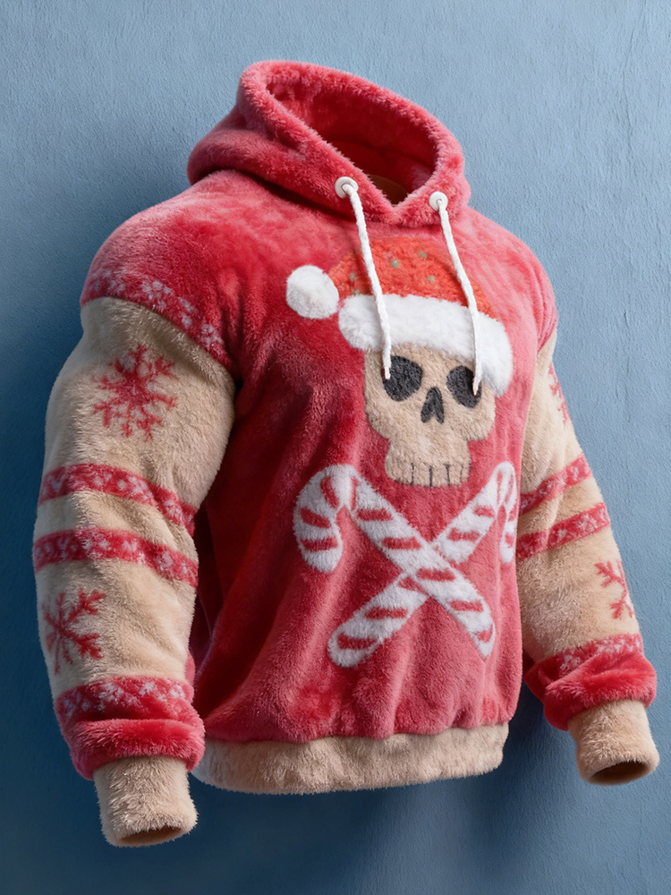 Simpfit Herren-Flanellhoodie mit lustigem Weihnachts-Totenkopfmotiv