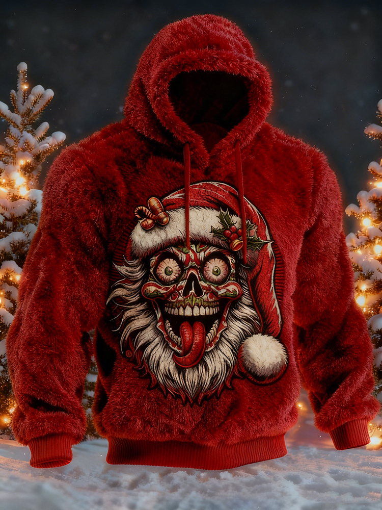 Simpfit Herren-Pl��schhoodie mit lustigem Weihnachtsmann-Muster