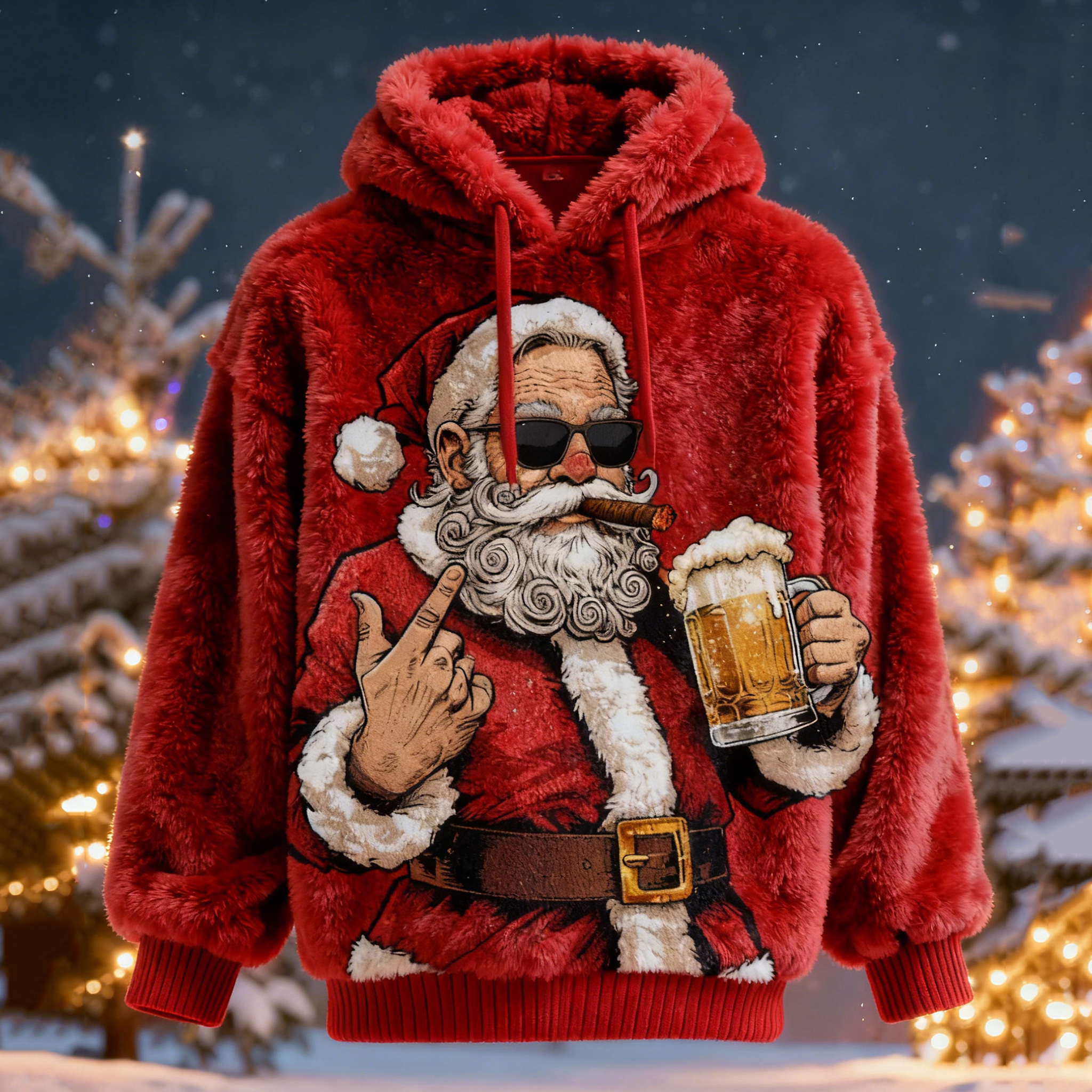 Simpfit Herren-Pl��schhoodie mit Weihnachtsmann-Motiv: lustig und bequem