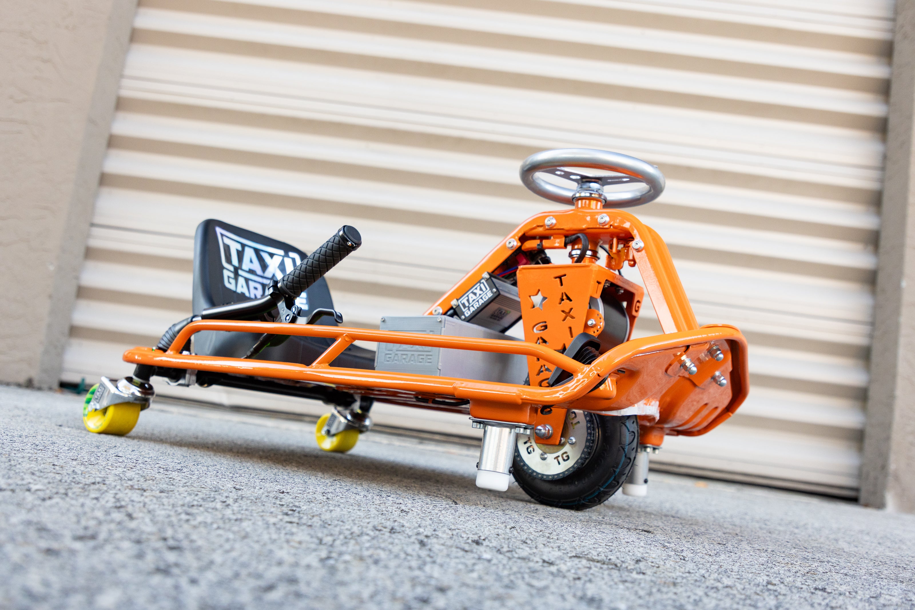 -TAXI GARAGE Wide casters including spacers w/longboard wheels.