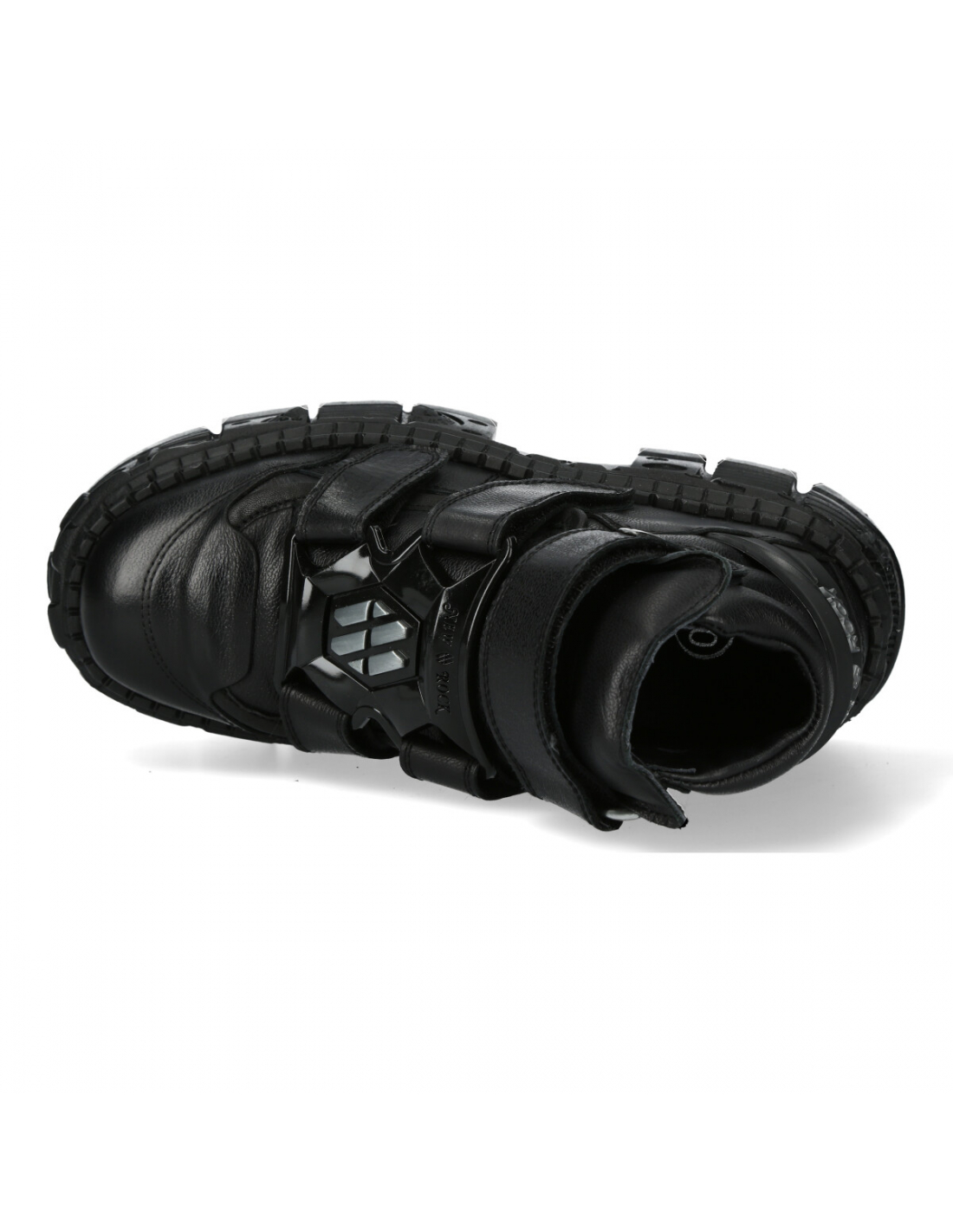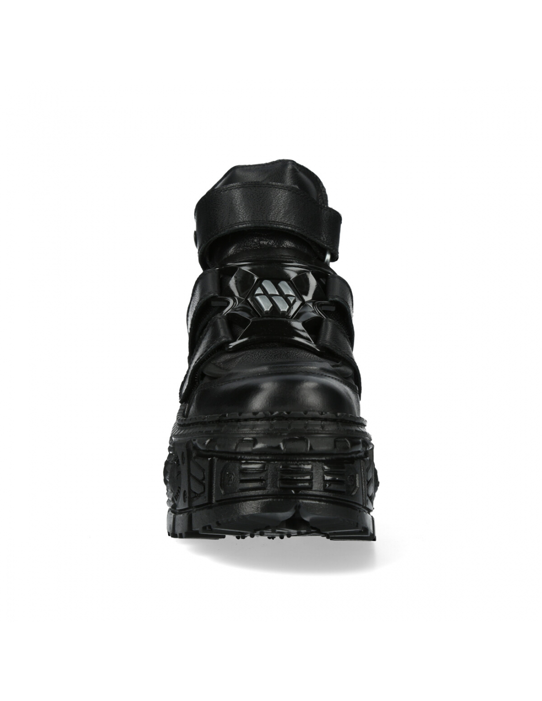 M-285-S2 is an iconic genuine leather ankle boot from the METALLIC collection. Boots with a saw-toothed platform and a black finish. What makes this model different are the velcro closures.